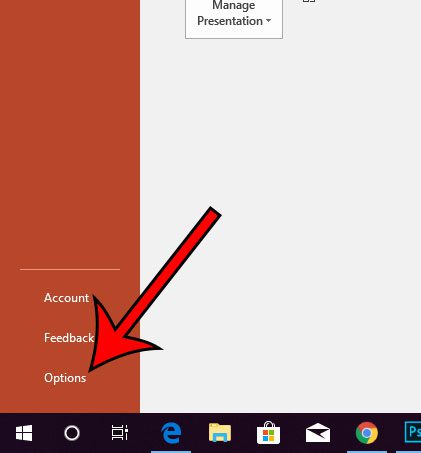 Vaihe 4: ValitseEdistynytTAB: n vasemmalla puolellaPowerPoint -asetuksetikkuna.