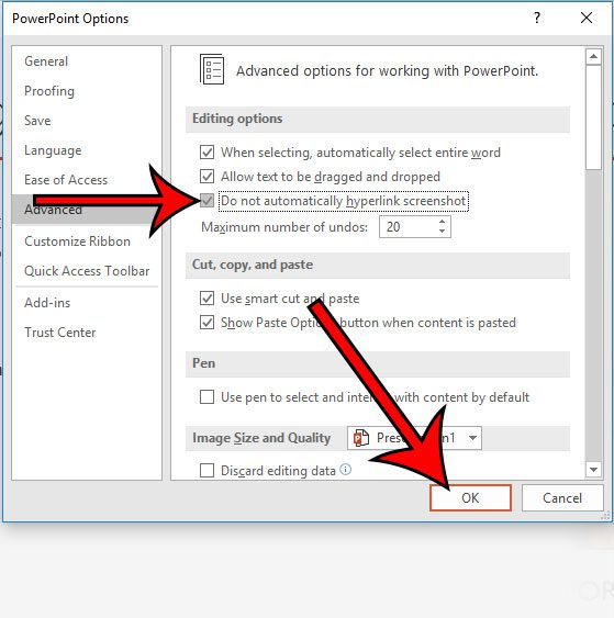 Vaihe 5: Valitse vasemmalla puolella oleva ruutuÄlä automaattisesti hyperlinkin kuvakaappauksia, napsauta sittenHyväpainike.