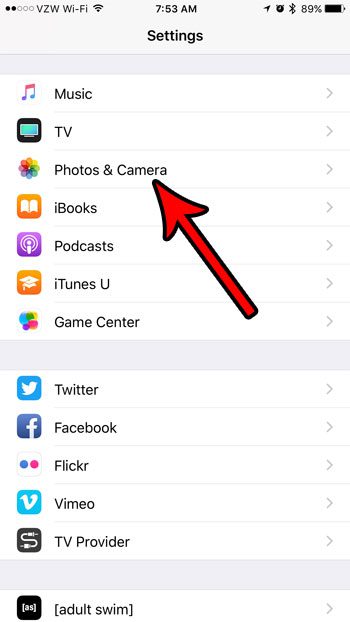 Vaihe 2: Vieritä alas valitaksesiValokuvat ja kameravaihtoehto.