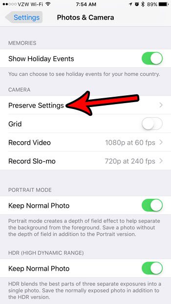 Säädä kaikki muut tämän valikon asetukset, joita haluat ehkä muuttaa, jos haluat, että iPhone ei säilytä myös kameratilaa tai live -valokuva -asetusta.