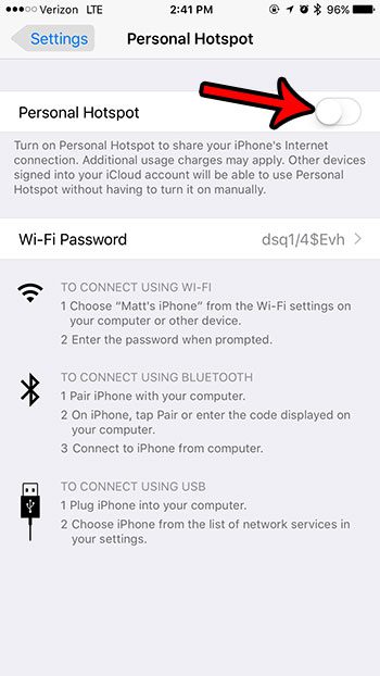 Vaihe 3: Napauta painiketta oikealla puolellaHenkilökohtainen hotspotSammuttaa se.
