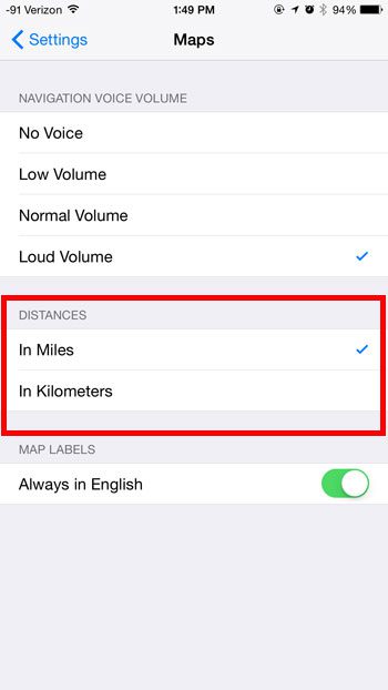 Tämä asetus vaikuttaa vain Apple Maps -sovellukseen oletusasetukseen. Se ei muuta mittayksikköä, jota käytetään muihin karttasovelluksiin, kuten Google Maps.
