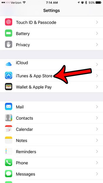 Vaihe 2: Vieritä alas ja kosketaiTunes & App Storevaihtoehto.
