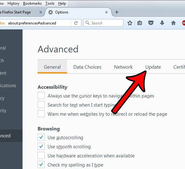 Mutta sinulla voi olla tilanne, jossa Firefox -päivitysten automaattisesti asentaminen ei ole parempi. Häiritsevätkö se työnkulkua tai sinulla on rajoitettu määrä tietoja, joita voit käyttää joka kuukausi, ja haluat rajoittaa automaattisia päivityksiä, on olemassa täysin hyviä syitä, miksi et ehkä halua antaa näiden automaattisten päivitysten esiintyä. Alla oleva oppaamme näyttää, mistä löytää tämä asetus, jotta voit poistaa Firefoxin automaattiset päivitykset käytöstä.