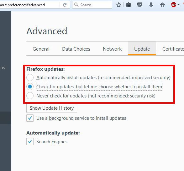Vaihe 6: Valitse Suositeltu päivitysasetus kohdassa olevista vaihtoehdoistaFirefox -päivitykset.