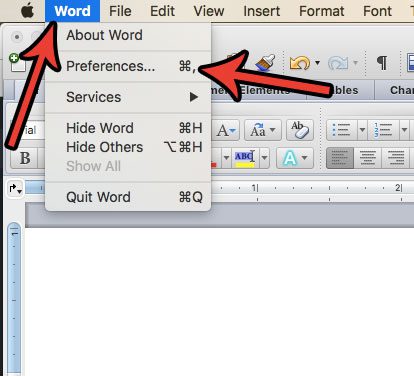 Vaihe 2: NapsautaSanaVälilehti näytön yläosassa ja valitse sittenMieltymyksetvaihtoehto.