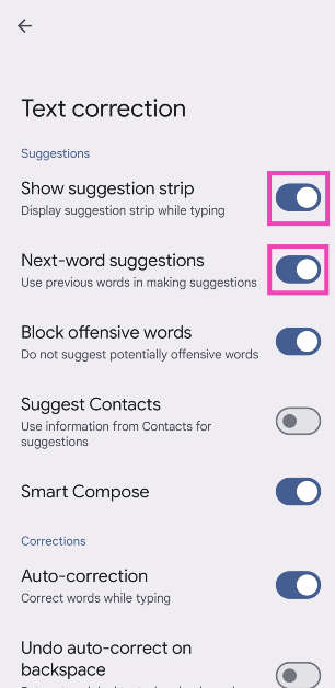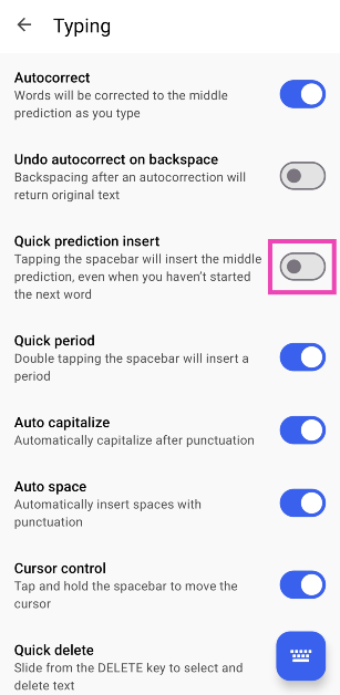 Kuinka voin poistaa ennakoivan tekstinkäytön käytöstä Gboardissa (Android)?