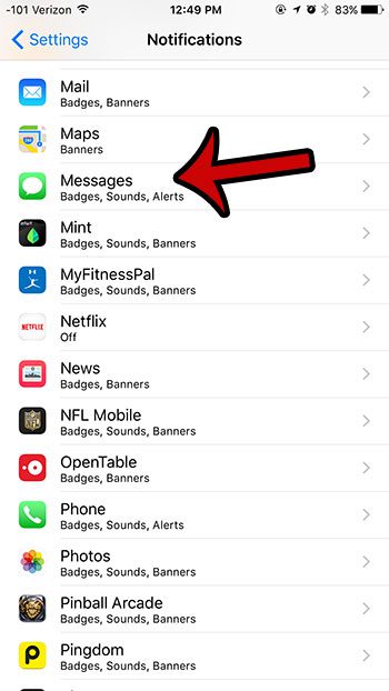 - Vieritä alas ja valitseViestitvaihtoehto.