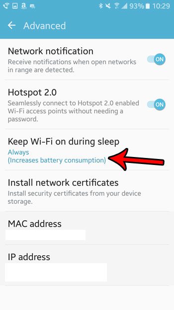Vaihe 6: ValitsePidä wi-fi unen aikanavaihtoehto.