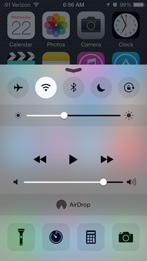 Toinen menetelmä -Käynnistä ohjauskeskuksen käyttäminen iPhonen lentokoneen käyttöön