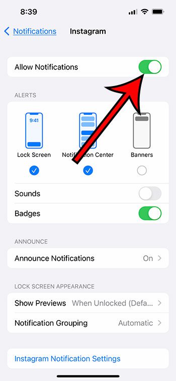 Nyt kun tiedät kuinka käynnistää Instagram -ilmoitukset iPhone 13: lla, voit siirtyä tähän valikkoon ja säätää siellä olevia vaihtoehtoja, kun luulet, että asetus saattaa olla väärä tai sammuttaa.