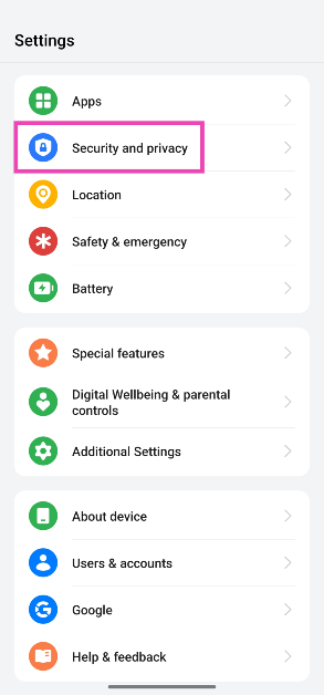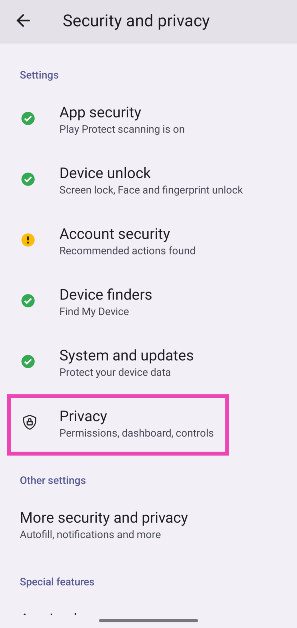Vaihe 1:Mennä jhkAsetuksetja valitseTurvallisuus ja yksityisyys.