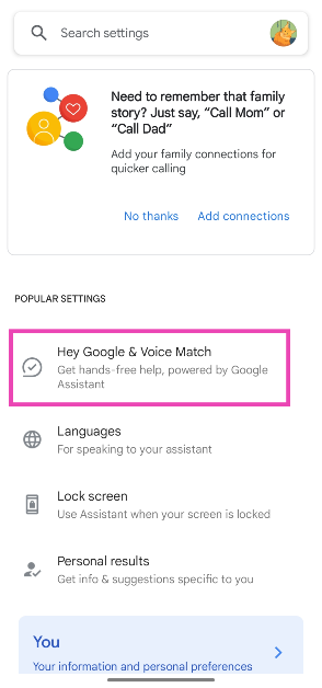 Vaihe 4:NapsauttaaHei Google & Voice Match.