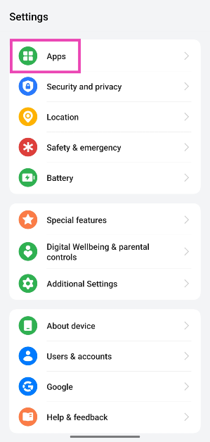 Vaihe 1:Mennä jhkAsetuksetja valitseSovellukset.