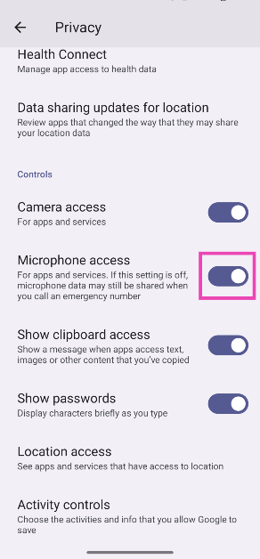 Vaihe 3:Vieritä alas ja kytke päälle/pois päältäMikrofonin pääsy.