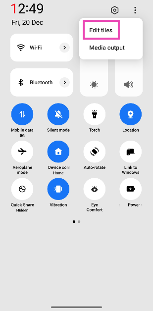 Vaihe 1: Pyyhkäistä alasperäisintilapalkkiPika -asetusten valikon paljastaminen.