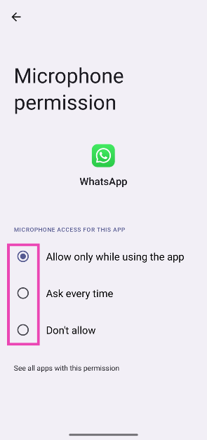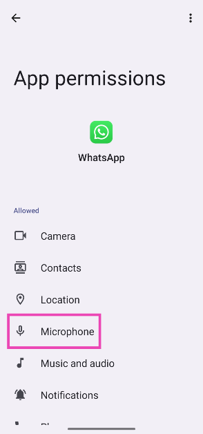 Vaihe 2:Valitsesoveltaajota varten haluat peruuttaa/ottaa käyttöön mikrofonin pääsyn.