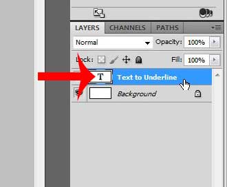 Tämä opetusohjelma näyttää, kuinka valita osa tai kaikki tekstin tekstissä, ja sitten alleviivataan valittu teksti. Jos teksti, jota yrität korostaa, on osa kuvaa, eikä erillistä tekstikerrosta, sinun on joko piirrettävä rivi manuaalisesti tekstin alle tai luotava uusi tekstikerros.
