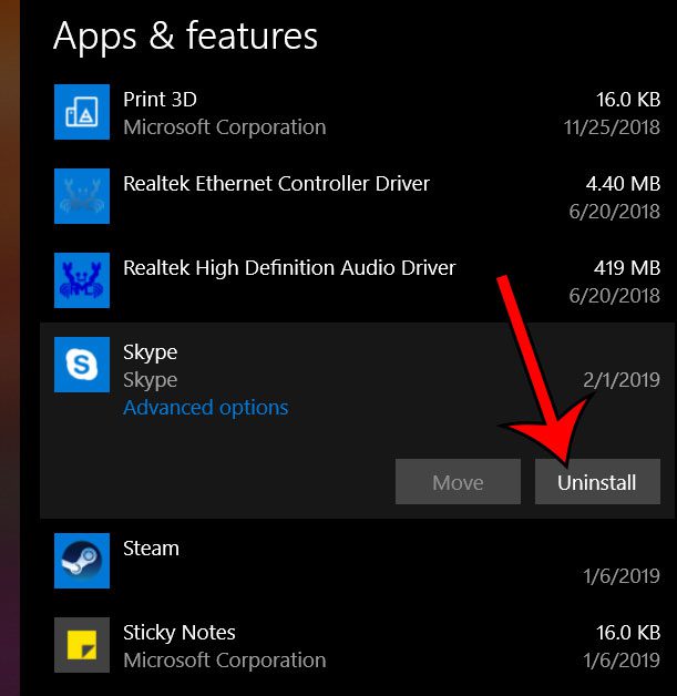 Artikkelimme jatkuu alla lisätietoja Skypen asennuksen poistamisesta Windows 10: ssä, mukaan lukien kuvat näihin vaiheisiin.