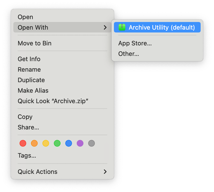 Toinen nopea tapa avata zip-tiedosto Macilla on käyttää sisäänrakennettua arkistoaputyökalua; Näin:
