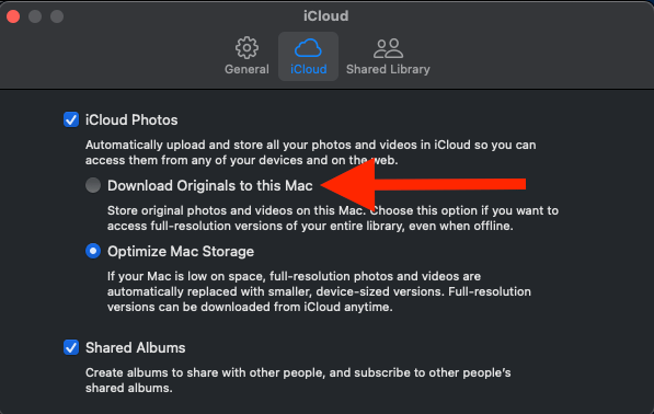 Tämän vaihtoehdon avulla Mac pitää kopion alkuperäisistä valokuvista ja videoista laitteessa. Lisäksi Mac lataa nämä samat tiedostot iCloudiin, jotta se pääsee helposti laitteillesi.
