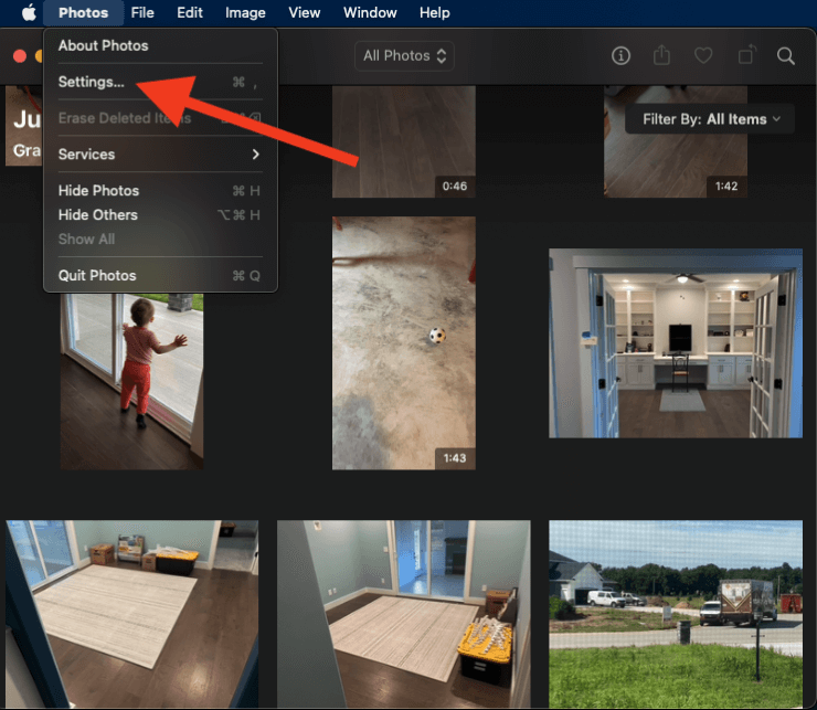 Kun sovellus avautuu, napsauta ”Valokuvia” näytön vasemmassa yläkulmassa. Valitse näkyvästä avattavasta valikosta ”Asetukset”.