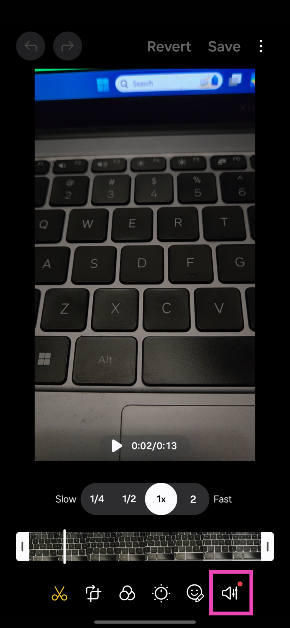 Avaa video Native Gallery -sovelluksessa, napauta näytön alaosassa olevaa lyijykynäkuvaketta, napauta näytön oikeassa alakulmassa olevaa kaiutinkuvaketta ja napauta 'Audio Eraser'. Puhelimesi analysoi videon erilaisille äänilähteille. Kun lähteet näkyvät näytöllä, napauta niitä yksitellen ja säädä niiden äänenvoimakkuutta sekoituksessa.