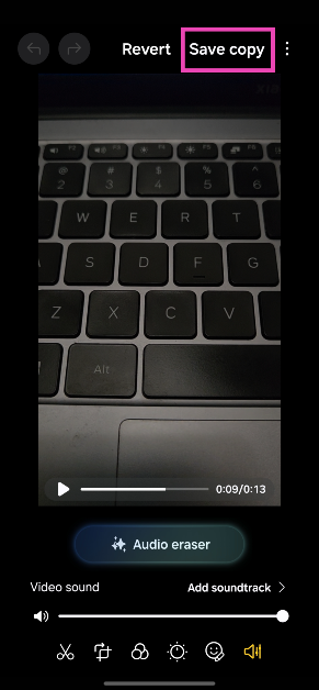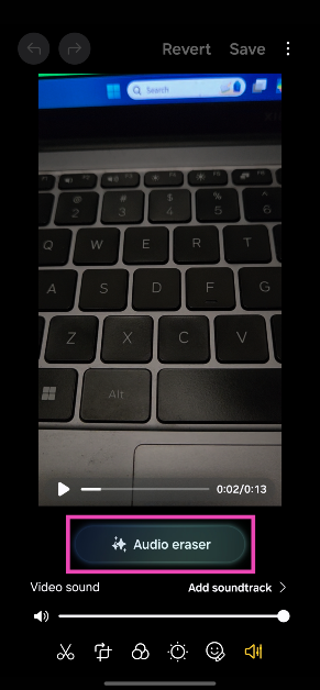 Samsungilla on Object and Audio Eraser -työkaluja alkuperäisessä galleria -sovelluksessaan. Audio -pyyhekumi -työkalu otettiin käyttöön viimeisimmässä UI 7 -päivityksessä.
