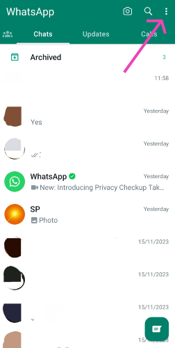 Vaihe 1: KäynnistääWhatsApp puhelimeesi ja vaihda siihenChatit-välilehti.