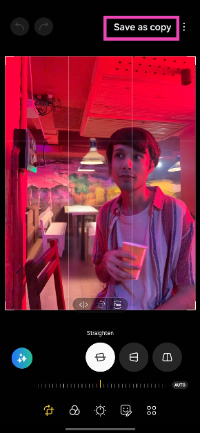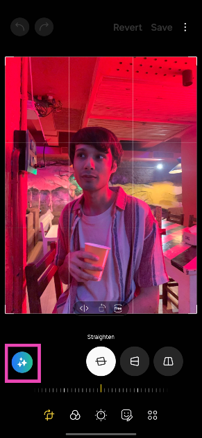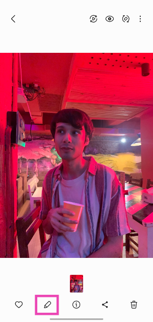 Jos älypuhelimesi tukee Galaxy AI: tä, avaa muokkaamasi kuva, napauta näytön alareunassa olevaa lyijykynäkuvaketta ja paina sitten sinistä kuvaketta tähtiä päästäksesi generatiiviseen muokkausominaisuuteen.