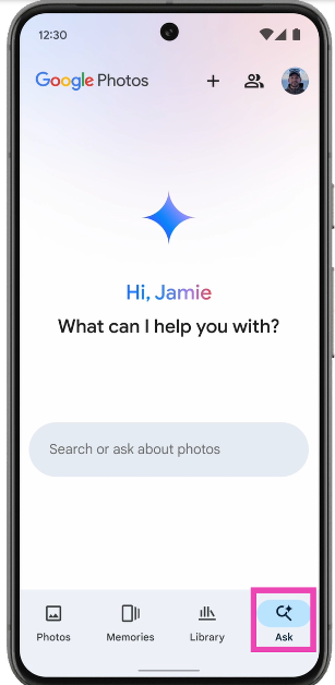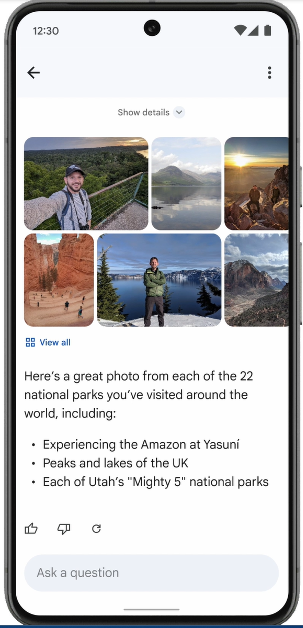 Kysy valokuvia ilmoitettiin osoitteessa I/O 2024, ja ne otetaan käyttöön Android -laitteisiin tulevina viikkoina.