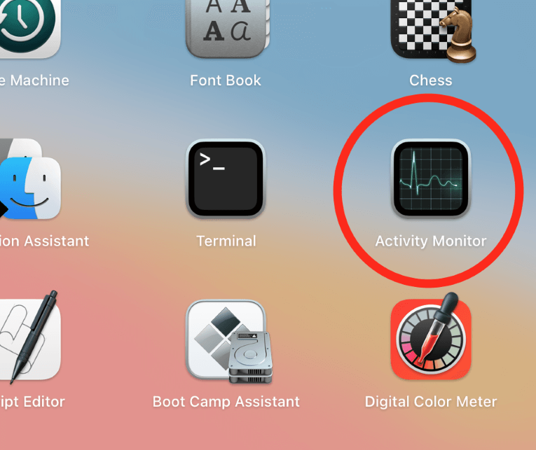 Aloita avaaSovelluksetkansio ja etsiAktiviteettivalvonta. Löydät sen myös etsimällä ”aktiviteettimonitoria”Valonheitin.
