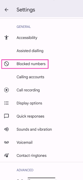 Käynnistä soittosovellus, siirry kohtaan Asetukset ja valitse Estetyt numerot nähdäksesi estoluettelosi.