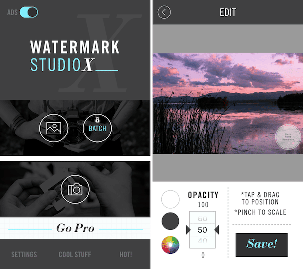 Ei vainVesileima studio xUpea tapa luoda ammattimaisia logoja vesileimana, mutta premium-version avulla voit lisätä irtotavarana vesileimat jopa viiteen valokuvaan kerrallaan iPhonessa. Näin voit luoda kaunis vesileima Watermark Studio X: llä.