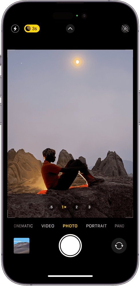 - Pidä paikallaan:Kun otat valokuvan, pidä iPhonea mahdollisimman tukevasti. Yötila vaatii pidemmän valotusajan, joten mikä tahansa liike voi aiheuttaa sumeutta.