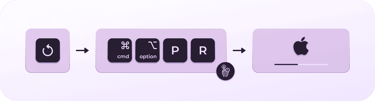 - Heti kun käynnistät Mac uudelleen, paina seuraavia näppäimiä noin 20 sekunnin ajan: vaihtoehto, komento, p ja r (samanaikaisesti).