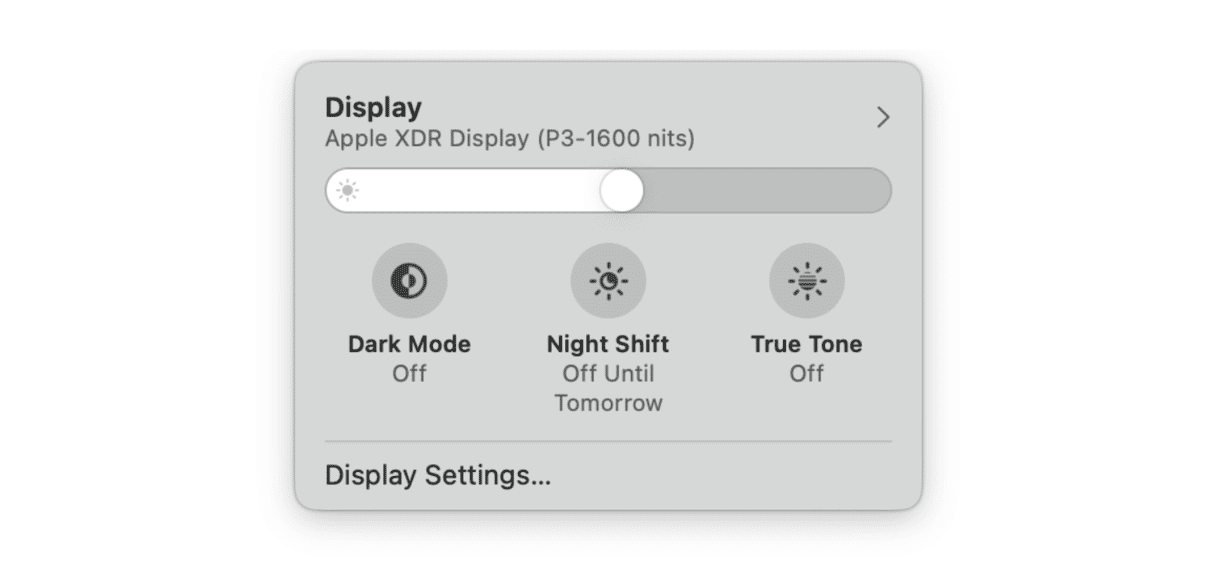 Napsauta vaihtoehtoisesti valikkopalkin ohjauskeskuksen kuvaketta> Näytä ja poista tosi sävy käytöstä sieltä. Tarkista, auttoiko se.