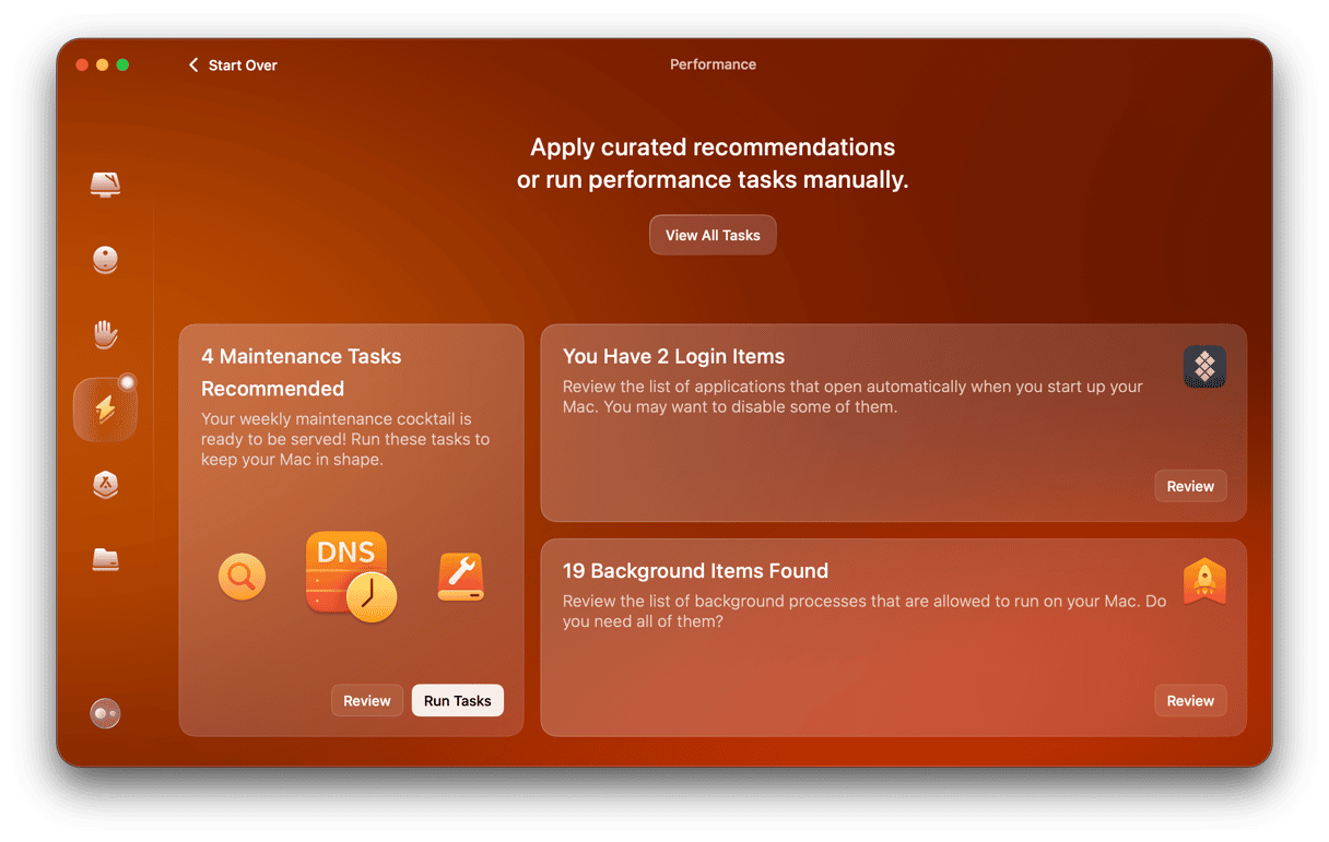 Siellä on kuitenkin vaihtoehto. Voit ylläpitää Macia helposti kätevällä sovelluksella - CleanMymac. Se on suunniteltu huolelliseen ja vaivatonta Mac -huoltoa varten ja se tarjoaa erilaisia työkaluja, mukaan lukien ne, jotka auttavat parantamaan suorituskykyä ja korjaamaan häiriöitä.