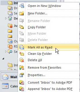 Outlook 2010 tunnusti, että tämä ongelma voi tapahtua, ja sisälsi tavan merkitä kaikki Outlook 2010 -viestit lukemalla.