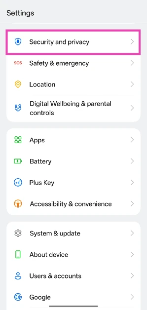 Vaihe 1:Siirry osoitteeseenAsetuksetja valitseTurvallisuus ja yksityisyys.