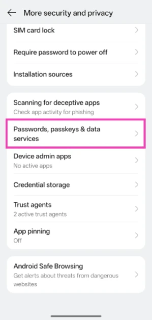 Vaihe 3:Vieritä alas ja napautaSalasanat, salasanat ja datapalvelut.