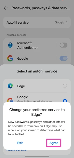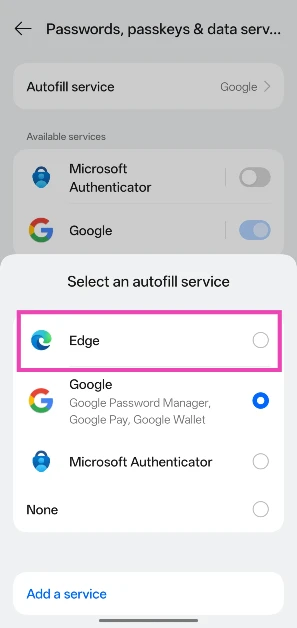 Aseta Microsoft Edge oletusarvoiseksi automaattisen täytön vaihtoehdoksi puhelimessasi