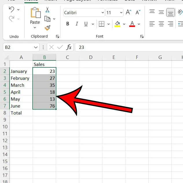 Vaihe 2: Valitse hiirellä kaikki solut, jotka haluat sisällyttää kokonaismäärään.