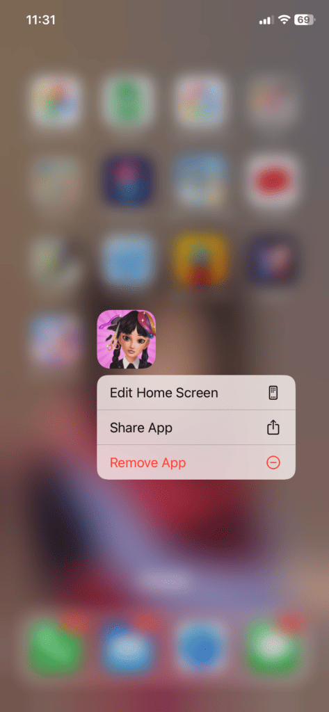 | Sovelluskirjastossa ei ole "Poista sovellus" -vaihtoehtoa | 1.Kosketuseleongelma:Pitkä painallus ei ehkä rekisteröidy kunnolla. | 1. Kokeile painaa sovelluskuvaketta hieman pidempään. 2. Jos ongelma jatkuu, yritä poistaa kohdasta Asetukset > iPhonen tallennustila. |