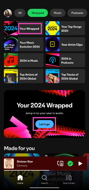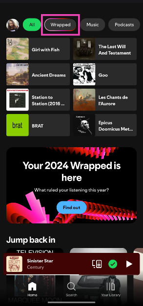 Siirry puhelimen Spotify -sovellukseen ja napauta kääritty välilehti näytön yläosassa. Napauta "kääritty" nähdäksesi sen.