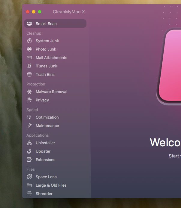 Jos olet jo ladannut ja asentanut CleanMyMacin, näet kaikki ikkunan vasemmalla puolella olevat eri apuohjelmat. Jos et ole vielä ladannut sitä, voitLataa se suoraan täältä.