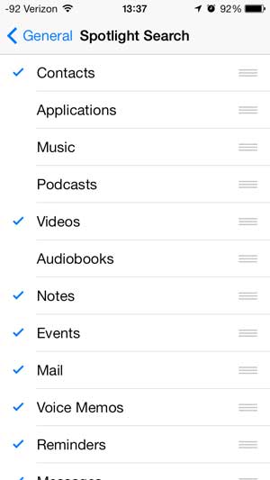 Vaihe 4: Valitse vaihtoehdot, jotka haluat sisällyttää Spotlight-hakuun.