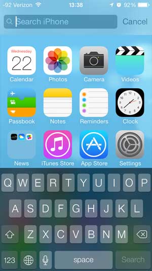Sitten voit kirjoittaa hakusanan löytääksesi tietoja kaikista sovelluksistasi. Pienellä kokeilulla kannattaa ehdottomasti nähdä, miten voit parhaiten sisällyttää sen päivittäiseen käyttöön, mutta se voi todellakin olla tehokas tapa järjestää puhelimessasi olevat tiedot.