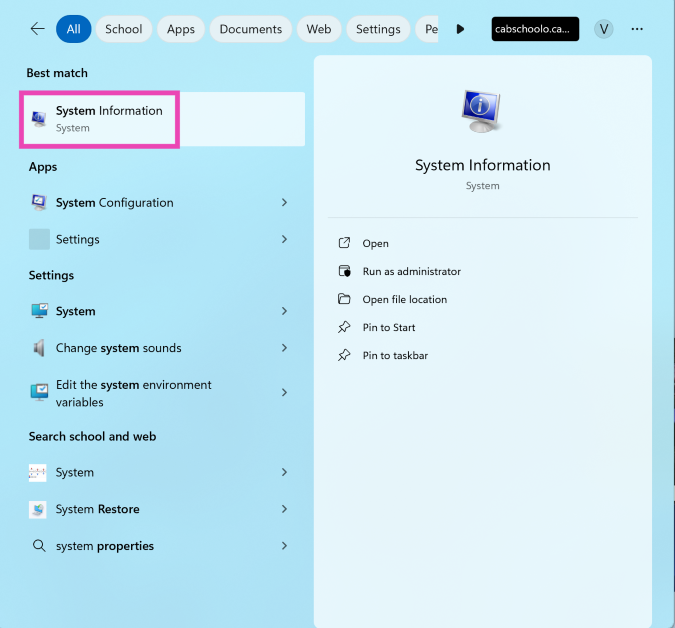 Vaihe 1:TyypillinenJärjestelmätiedot'Hakupalkissa ja avaa ensimmäinen tulos, joka aukeaa.