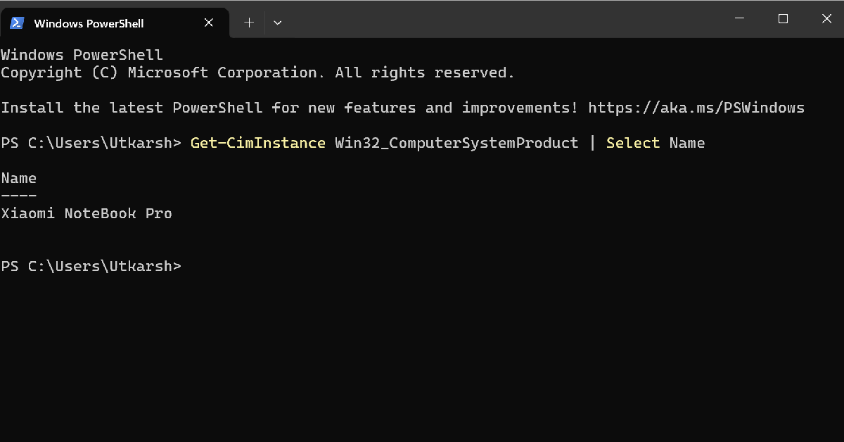 Get-ciminstance win32_computersystemproduct | Valitse nimi